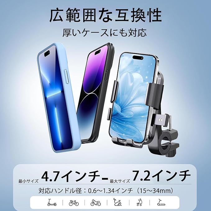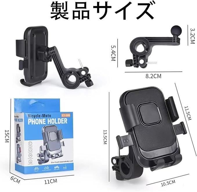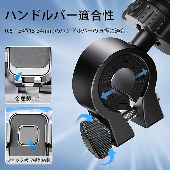✔️【インストールが簡単】取り付けベースのサイズは、自転車やオートバイの直径20〜32mmのハンドルバーのサイズに合わせて調整できます。ネジでベースをハンドルバーに取り付けます。揺れたり滑ったりすることはありません。ロードバイク、マウンテンバイク、オートバイ、電気スクーターで広く使用されています。すべてのネジ付属品は製品自体に含まれており、追加の付属品はありません、工具不要で取り付けるだけでなく、従来型よりも速く取り付けることができます。設置の利便性を大幅に向上させます。ホルダーーは挿入により固定タイプです。底部のパッドがスマホンの落下を防止できます。