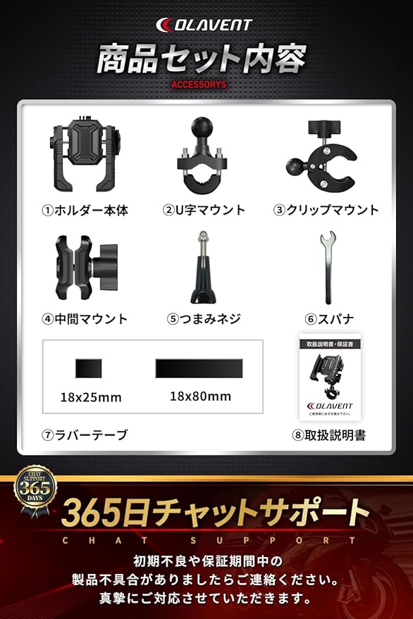OLAVENT(オーラヴァン) バイク スマホホルダー 携帯ホルダー バイク用スマホホルダー 振動吸収 アクションカメラ バーマウント2個付 原付 自転車 (バーマウントセット)