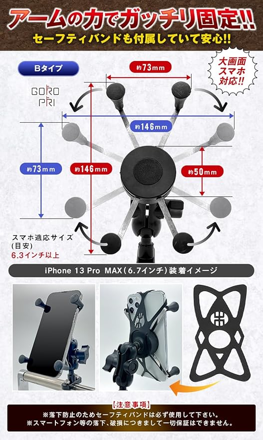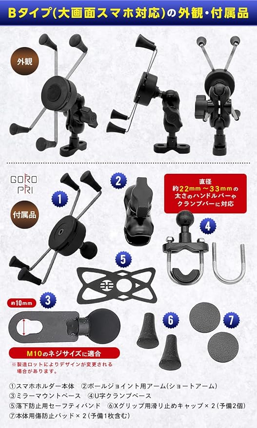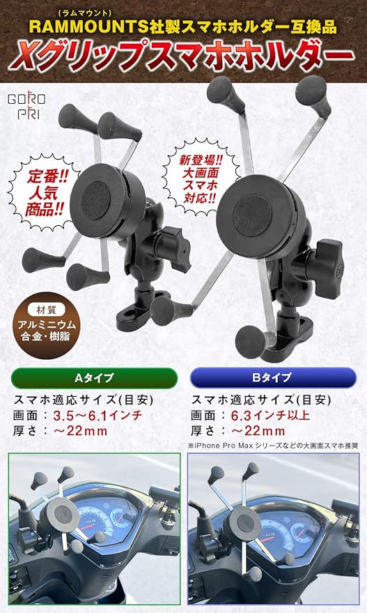✅【バイク用スマホホルダーの定番】本製品はお馴染みの「Xグリップスマホホルダー」の互換品となります‼ 従来のAタイプに加えて、昨今のスマホの大型化に伴い誕生した新登場のBタイプはiPhone Pro Maxシリーズに代表される✅大画面スマホに対応しております アルミニウム合金製のバイク用スマホホルダーで スマホホルダー本体はもちろんステーにも金属を採用し耐久性向上‼安心感抜群‼