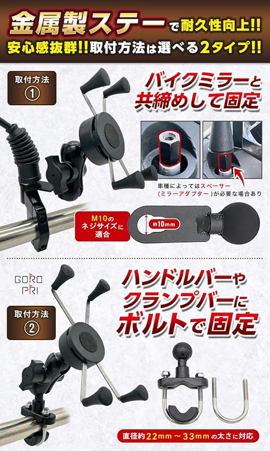 ✅【注意事項】本製品を使用する際は、必ずスマホ装着前にスマホホルダーの点検を行い、走行中は落下防止のためセーフティバンドを使用して下さい。 スマートフォンやタブレット等の落下,破損につきまして一切.はできません。取付方法でバイクミラーと共締めするタイプを選択する場合、車種によってはスペーサー(ミラーアダプター)が必要な場合あります。製造ロットによりパーツデザインが変更される場合があります。