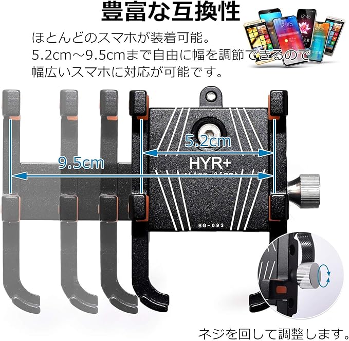✅【豊富な互換性】ほとんどのスマホが装着可能。5.2cm~9.5cmまで自由に幅を調節できるので幅広いスマホに対応が可能です。