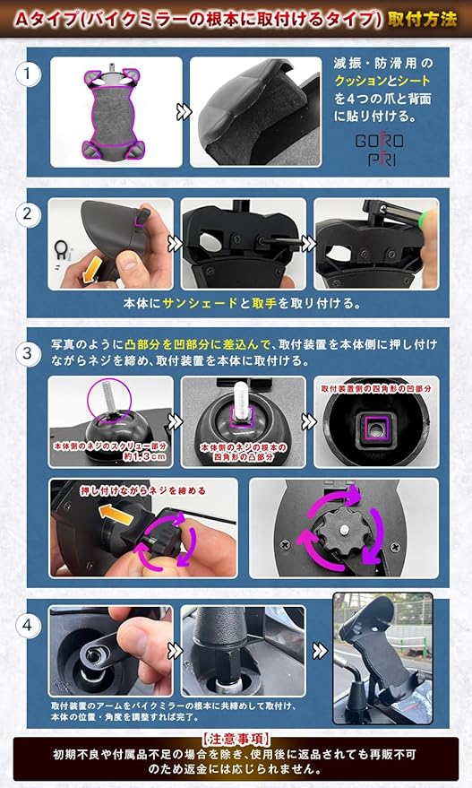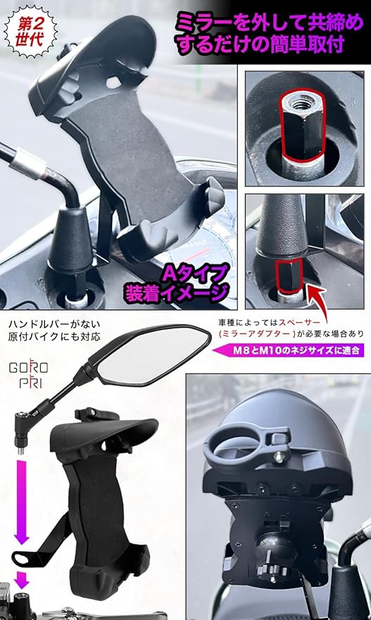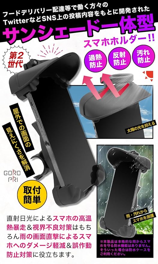 【GOROPRI】 原付 スマホホルダー サンシェード付き スクーター バイク用 自転車 日除け 雨除け 第2世代 日本語説明書付き (Aタイプ※バイクミラーの根本につけるタイプ) | oioioichan