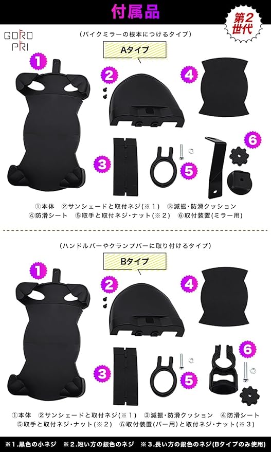 ✅【注意】 Aタイプは車種によってはバイクミラーの根本のスペースが取り付けに十分でないため、別途スペーサー(ミラーアダプター)を用意する必要があります。 両タイプ共に感覚的に取り付けが可能となっております。したがって本製品には取扱説明書は付属しておりません。