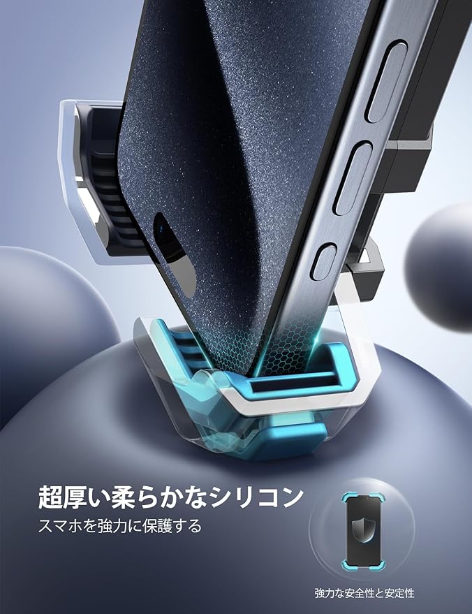 ️【スマホの保護者‼️100%振動吸収シリコン】 バイク用スマホホルダーの四隅はクッション性のあるゴムパッドで覆われており、スマホをすっぽり包み込みます。150mまでの高速走行でも、スマホが緩んだり落下したりする心配がなく、しっかりと固定することができます。さらに、スマホホルダーの外側には、飛散防止と耐摩耗性に優れたクッションシリコンを採用し、スマホをしっかりと保護します。
