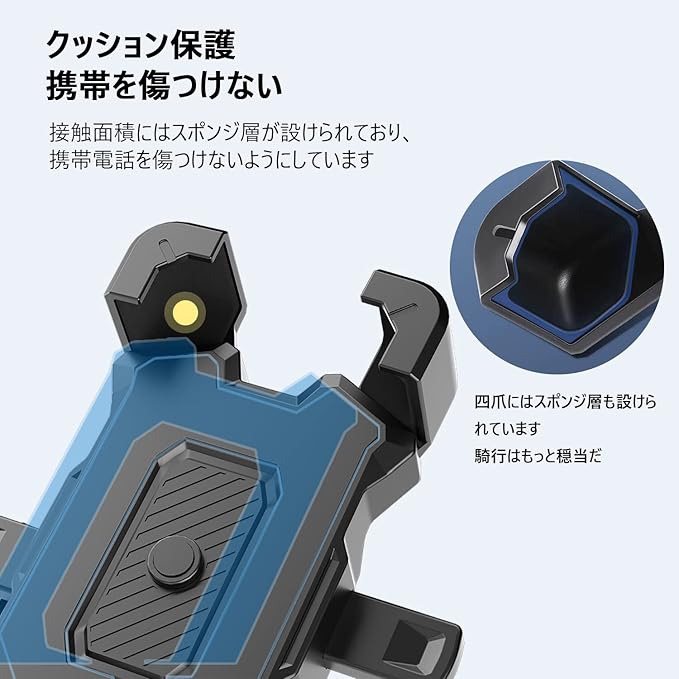 ▶構造が頑丈で安定&振動防止:自転車用スマホホルダーは強化された伸縮システム及び分厚い四隅固定設計を採用し、一般のスマホホルダーよりさらに安定しているだけでなく、スマートフォンもしっかりロックし、ご大切な携帯電話を落下によるダメージから守れます。また、バイク スマホホルダーの四隅には衝撃吸収シリコンマットが追加され、ごスマートフォンを傷付きから守りながら。強烈な振動でも携帯が落ちない。様々な道路状況に適し、非常に安定で頑丈です。