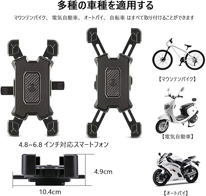 ▶多機種に対応:約4.8-6.8インチのスマホなら全て適用です。バイク、オートバイ、ロードバイク、マウンテンバイク、モーター、電動バイクなどハンドルがある交通工具に適用。より快適なライディング体験をお届けします。