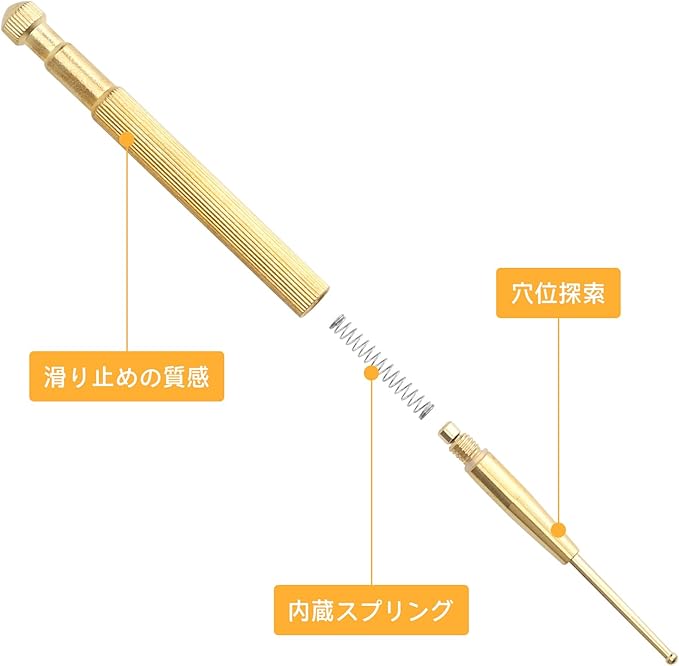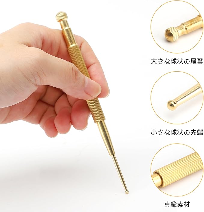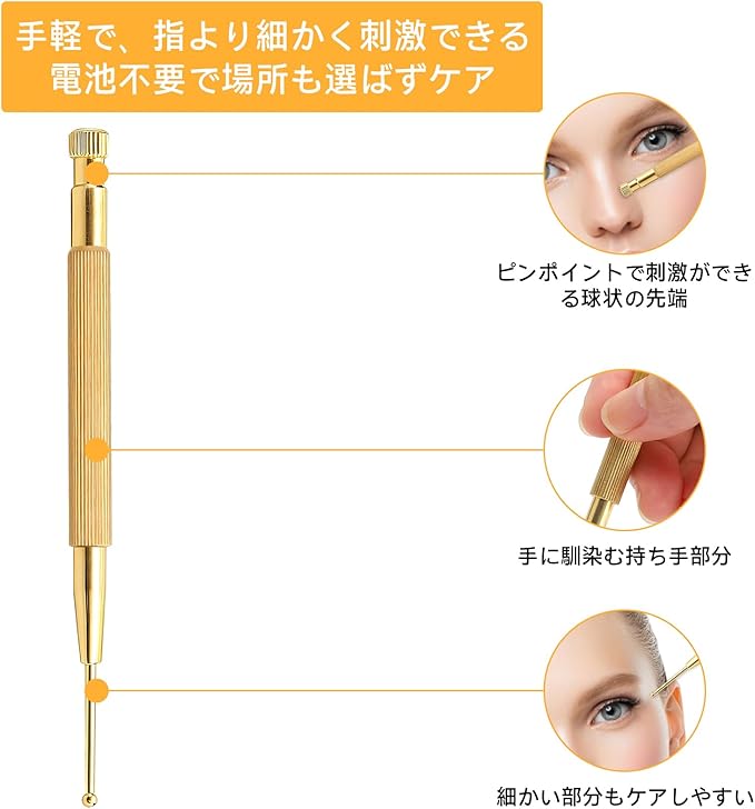 フェイス バネ式 真鍮製 耳つぼ フェイスポインター スティック ツボ押し ノック式 バネ 耳つぼ棒 ツボ押し棒 棒 顔 ポインター 丸い先端 筋膜リリース LATTCURE | oioioichan