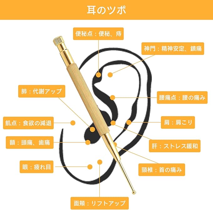 【幅広く対応】耳つぼ スティックは、耳ツボを押すときに最適なアイテムです。ツボは耳に約91か所あり筋肉、神経、内臓などと連携しています。押すだけで表情筋のコリをほぐすことができ、お顔のケアだけでなく、耳つぼや全身などにもお使いいただけます。