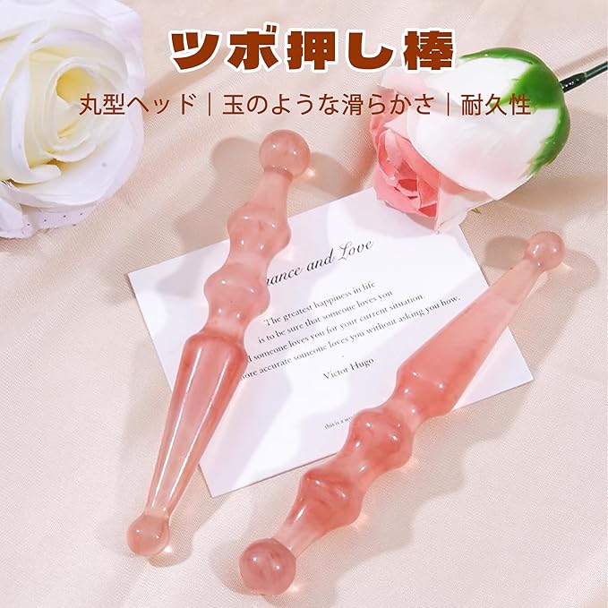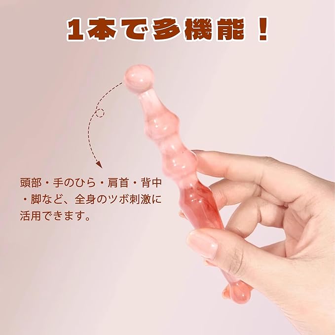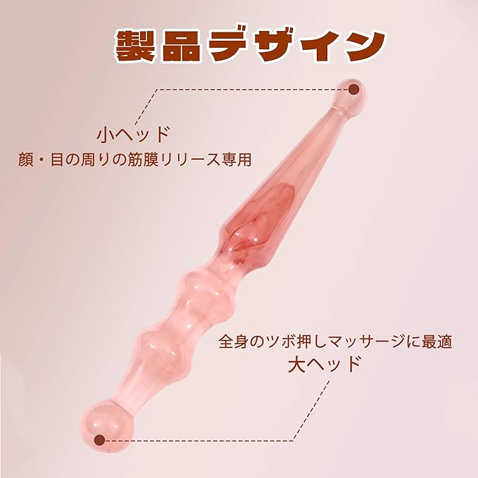 KENASTA ツボ押し棒 顔 ポインター 全身用 ペン 筋膜リリース 小顔 フェイスケア 目元 頭 肩 首 背中 足裏 経絡 トリガーポイント 琥珀ピンク色 樹脂製