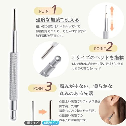 フェイス ツボ押し棒 バネ式 レディース 【すき間時間でポスポス出来る】 (シルバー)