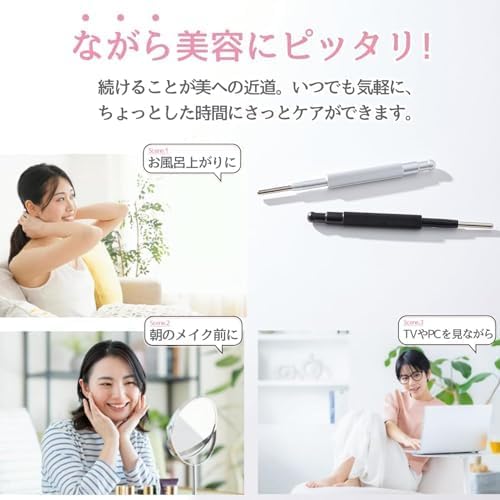 【ながら時間にぴったり】 コンパクトで軽量なため、忙しい日常のスキマ時間にも手軽に使えるのがポイント。お風呂上がりや朝の準備前、または外出先でも手軽にセルフケアを取り入れられます。