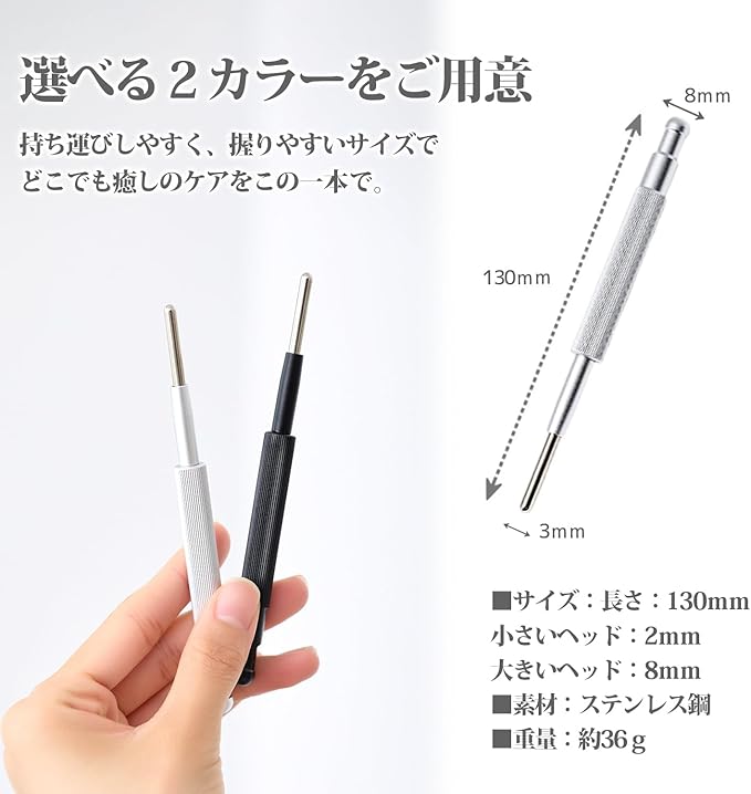 【毎日清潔に使える素材】 肌に触れるものだからこそ、素材にもこだわりました。ステンレス製でお手入れしやすく、入浴中の使用にも対応。電源不要でいつでもどこでも使用できるため、首元やデコルテ、頭皮まわりのケアにもおすすめです。