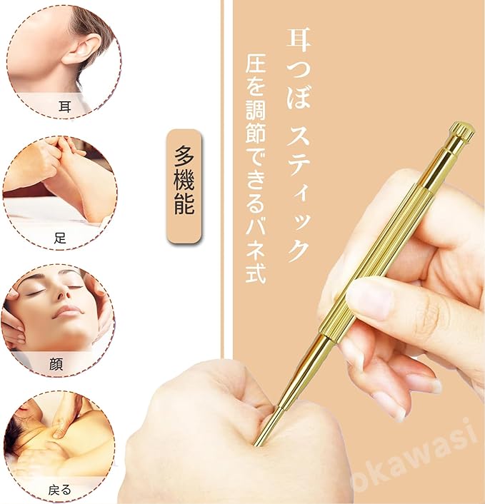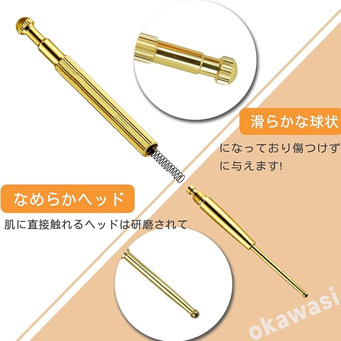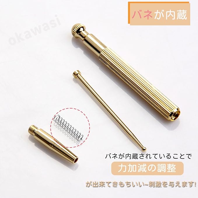 【内臓で圧を調節できる】スティックには、バネが内臓されており、つぼ押しの圧を調節できます。ばね式なので、あなたの耳ツボをやさしく刺激してくれます。美容や健康を意識した方におすすめです。