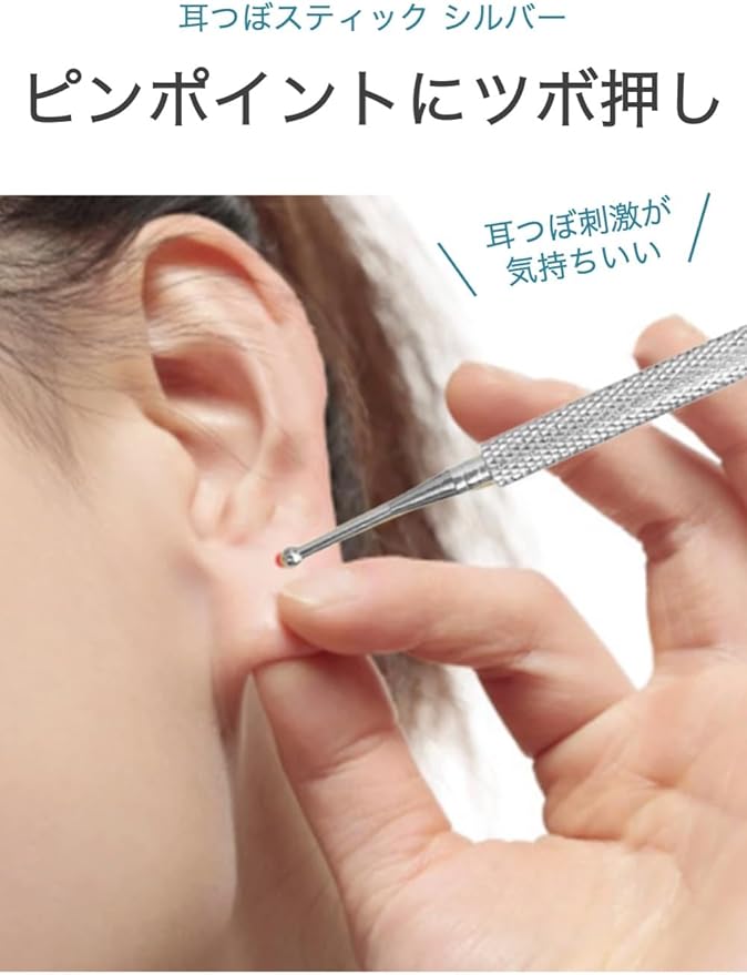 wumio 耳つぼ スティック 1本 シルバー ツボ押し 耳つぼ棒 耳 つぼ ツボ押しスティック 丸い先端 位置確認 シンプル 軽量 おしゃれ 耳つぼスティック ピンポイント | oioioichan