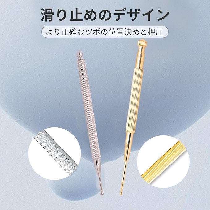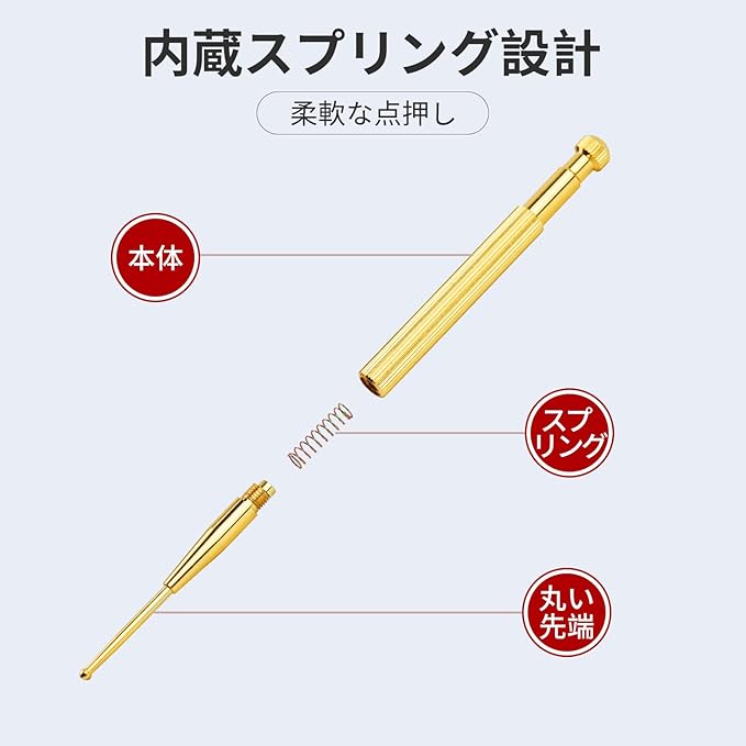 【スプリング付属】銅製の耳つぼはスプリングが入っており、圧力調整が簡単に行えます。