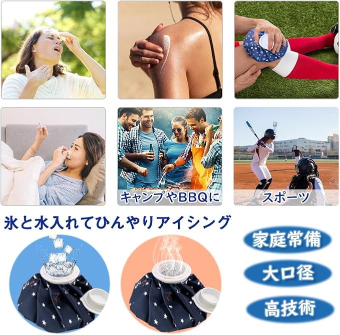 アイスバック 氷のう 大口径 2個セット 冷温両用 氷嚢 アイシングバッグ 結露なし 冷温両用 水漏れ防止 スポーツ用 応急処置 家庭常備品 熱中症 発熱 生理痛 ねんざ だぼく 肩ケア 肘 膝 足首 頭 ケガ アウトドア 暑さ対策 アイシング用品 | oioioichan