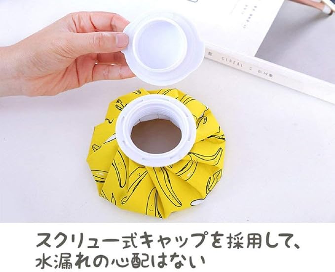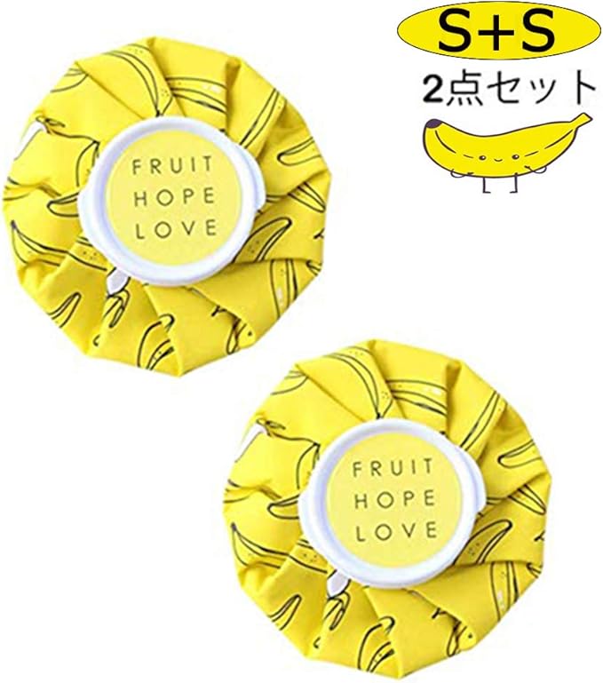 【かわいい氷嚢】パッケージ内容:Sサイズ2点(バナナ柄) Sサイズ:直径約15cm 素材:ポリエステル・ポリウレタン・ABS・シリコン・アルミニウム