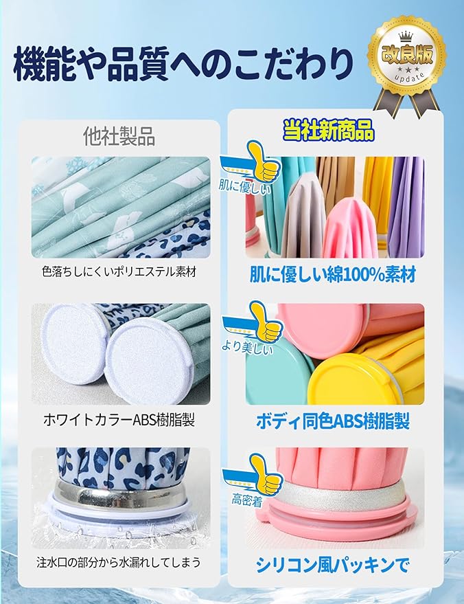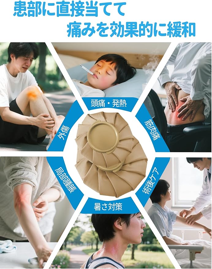 【冷熱W療法対応】 氷でアイシング(捻挫・打撲)や暑さ対策に、55℃以下温水で温熱療法(筋肉疲労回復)に活用。1年を通じて活躍する万能アイテム。