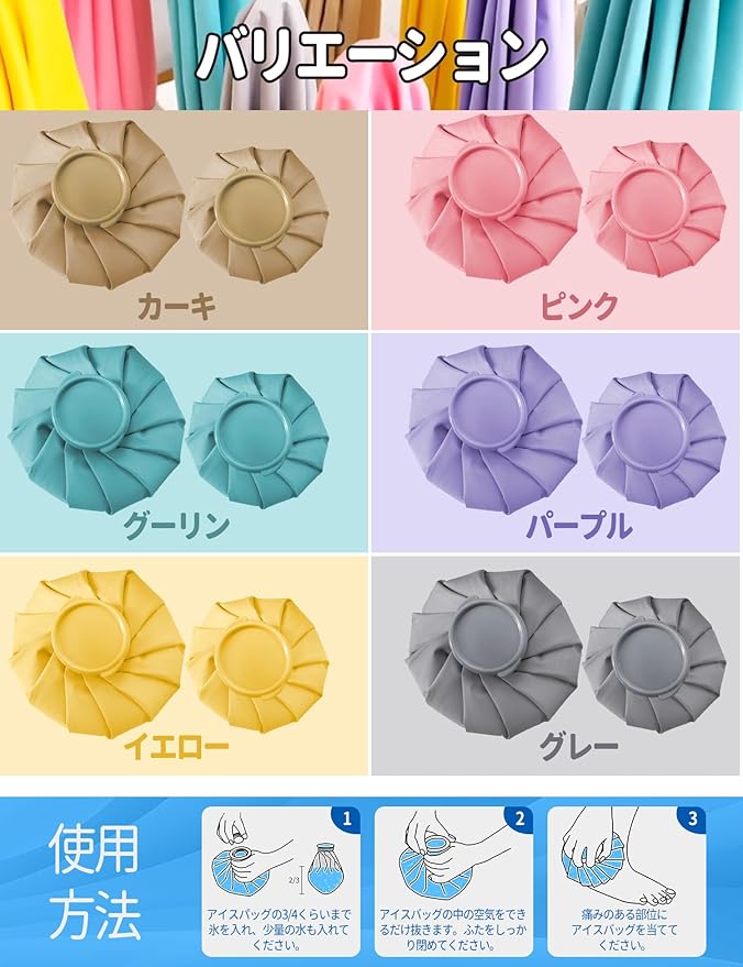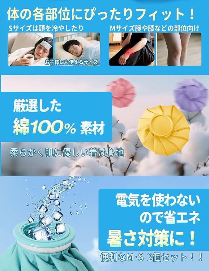 アイシング 氷嚢 2個(S+M) セットアイスバッグ 氷のう 大口径設計 首・肩用 スポーツクールダウン(野球 サッカー ゴルフ肘 膝 足首 頭 ケガ対応) 家庭用保冷グッズ | oioioichan