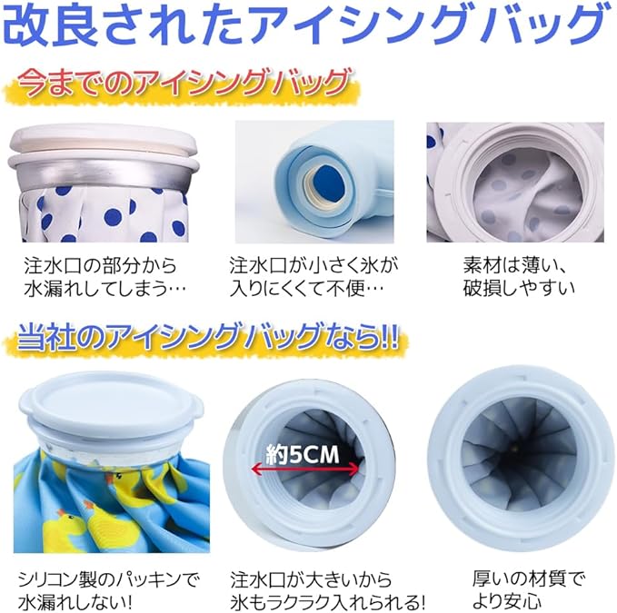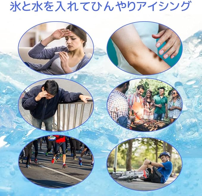 【大口径設計・水漏れ防止】アイシングバッグは大口径設計により氷の出し入れが簡単で、ネジ式のセーフティシールストッパーを使用しているので水漏れの心配はありません。【軽量で持ち運び可能】アイスバッグは持ち運びに便利で、軽量です。車、ワークデスク、自宅、旅行用バッグに入れて、すぐに冷却処置を行うことができます。