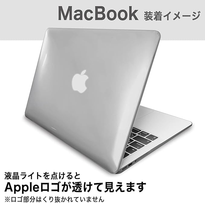 <特徴>Appleロゴまで完全カバーし、MacBookを傷から守り、キーボードをほこりや汚れから保護します。※Appleロゴ部分はくり抜かれていませんが、Appleロゴが透けて見えます。