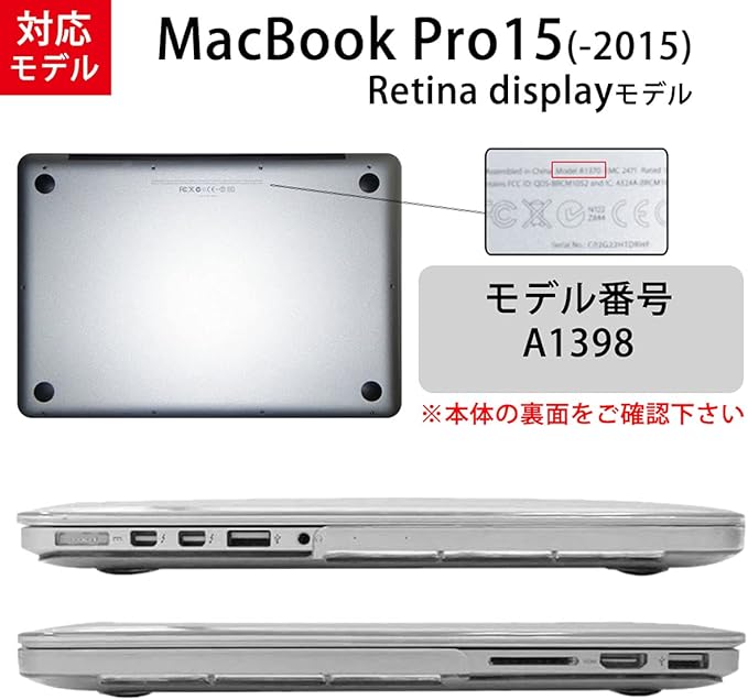 <MacBookケース対応モデル>MacBook Pro Retina ディスプレイ 15.4インチ Mid 2012年モデル~Mid 2015モデル ( A1398 ) に対応したケースです。