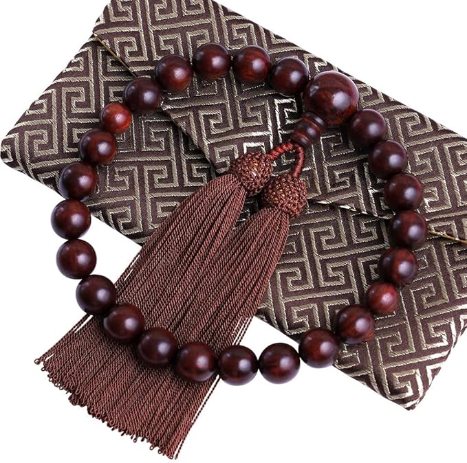 【高品質な紫檀】耐朽性は極めて優れた紫檀の木から作られた男性用の念珠です。紫檀は色調はかなり変化に富んでいます。使い込むほどにしっくりと手に馴染んでいきます。