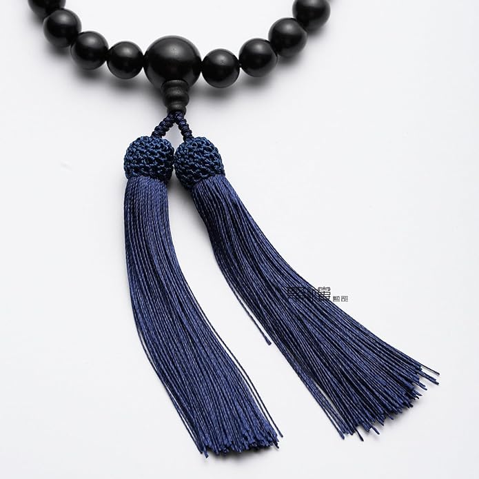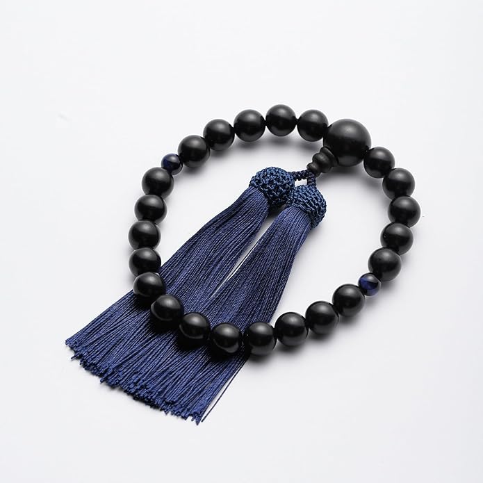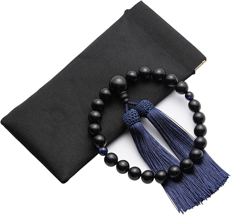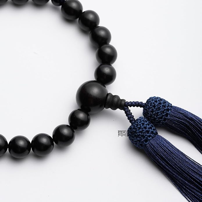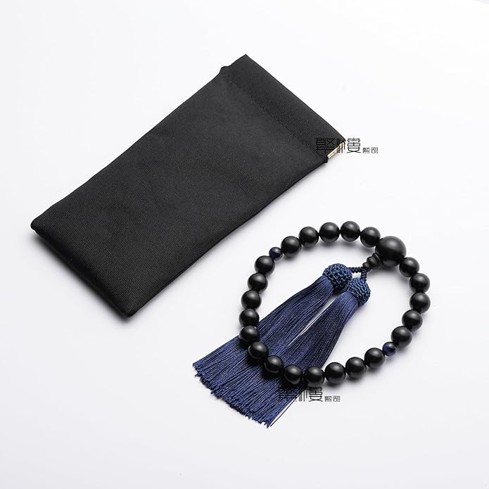 [ 繁∞FAN LOU∞樓藝雕∞5] 数珠 男性用 縞黒檀 艶あり 22玉 正絹頭付房 数珠袋付き 念珠 略式数珠 葬式 墓参り 法事 念誦 全ての宗派に使用可能 (天珠:水晶, 房色:鉄紺) | oioioichan