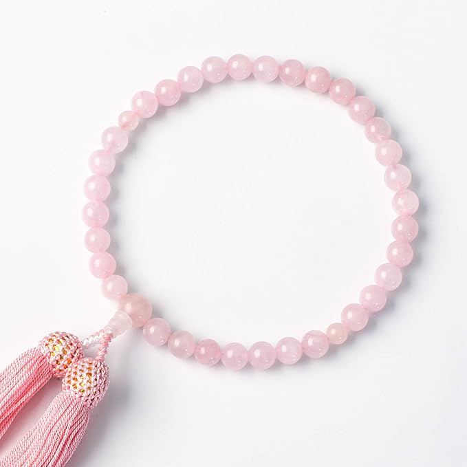 LEOBEE 女性用数珠 マグネット式数珠袋付き 念珠 じゅず 手作り念珠 数珠ブレスレット 葬式 葬儀 墓参り 法事 念誦 全ての宗派で使用頂け 紅水晶(ローズクォーツ) 落ち着いたピンク プレゼント | oioioichan