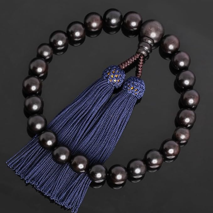 【素材&サイズ】主玉:縞黒檀 12ミリ、天玉:縞黒檀 10ミリ、親玉:縞黒檀 18ミリとなります。房色:鉄紺。