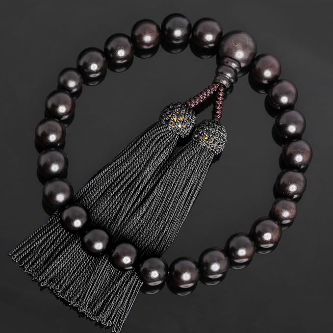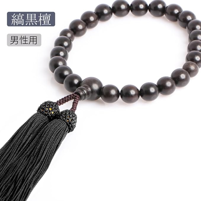 緣善念珠屋 数珠 男性用 葬儀 縞黒檀 マグネット式数珠袋付き 葬儀用 法事用 念数珠 お盆 メンズ 紳士用 じゅず すべての宗派で使用可能 (房 黒色)