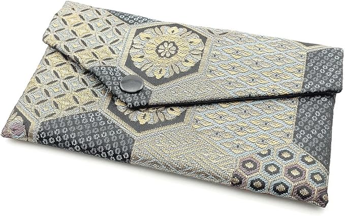 数珠袋の特徴:日本の伝統文様、亀甲模様を織り上げた西陣織の数珠袋です。亀甲文様は、亀の甲羅のように固く身を守ることで長寿や健康なっています。また紙幣の象徴としても、金運が良くなるとされています。あらゆる意味で、縁起がいいものとされているのですね。