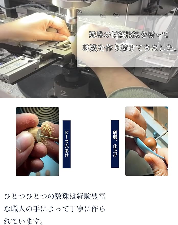 【職人技のディテール】 伝統的な工芸技術で作られた数珠は、一つ一つ丁寧に仕上げられています。