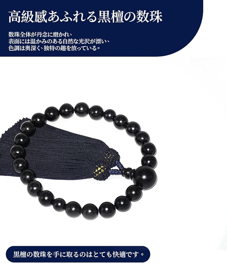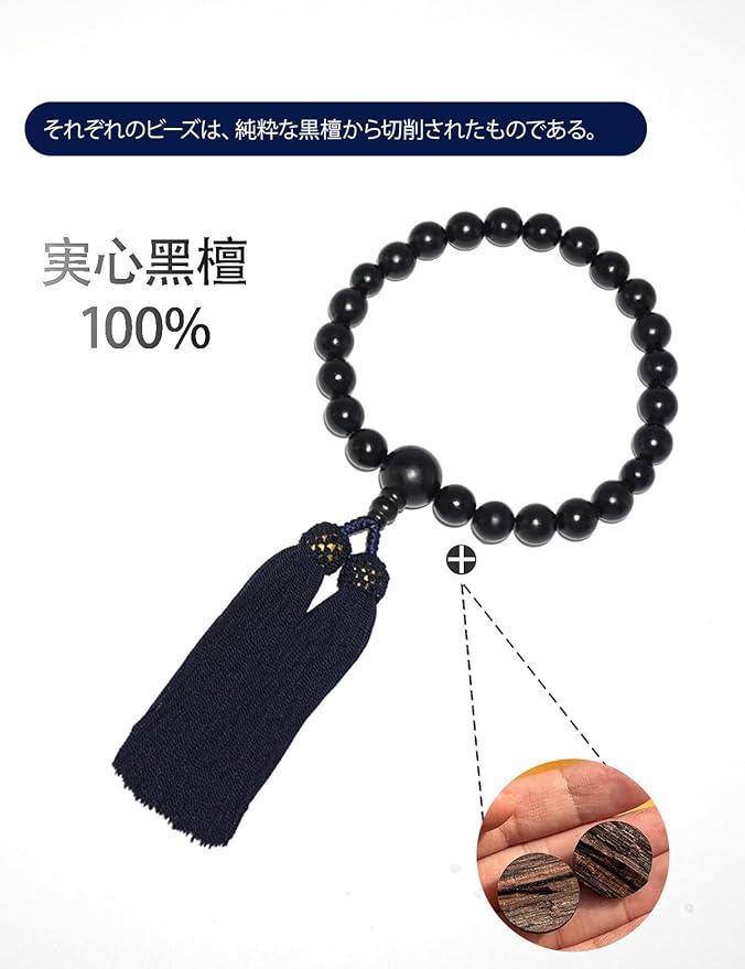 【高級黒檀使用】 厳選された高級黒檀木材で作られた数珠は、耐久性と美しさを両立し、長くご使用いただけます。