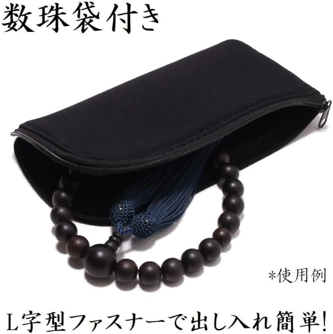 <数珠袋付>携帯に便利な数珠袋をお付けさせて頂きます。<念珠堂製作証明書カード付> 念珠堂が製作した事を証明するカードとなります。