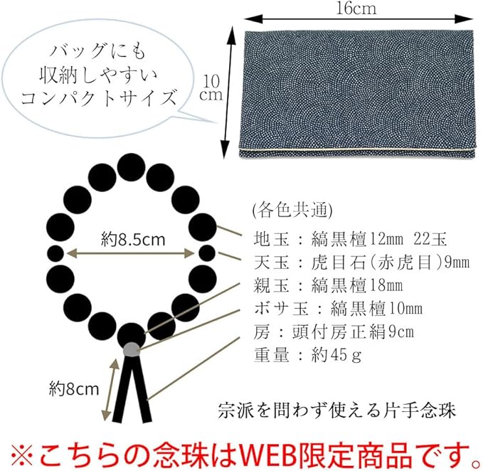 どの宗派の方でもお使いいただける略式の片手念珠(男性用) と数珠袋のセットです