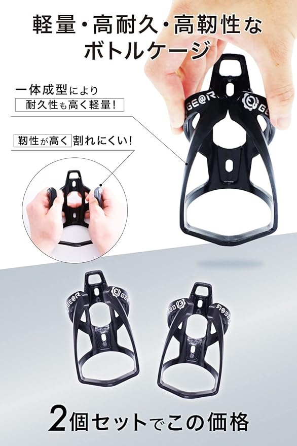 本ボトルホルダーは、ロードバイクやクロスバイクに最適で、2個セットなのでボトルの2本差しやボトルとツール缶等の組み合わせも可能です。