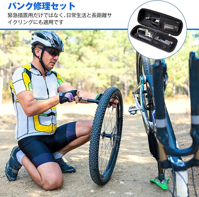 持ち運び便利:この自転車修理工具セットは、軽くて小さく携行生が良いので、ツーリングや通勤などに携行するのに便利です。緊急時に使うためのものですので、常に持ち運ぶ必要があります。自転車修理キットがあれば、ツーリングやサイクリングで遠出しても安心です。通勤、通学にも大活躍!