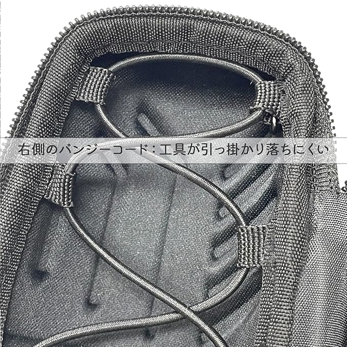 【スムーズな出し入れ設計】 ケース内側の仕切りが自然に膨らみ、工具やチューブが“引っ掛からず”スムーズに出し入れ可能。