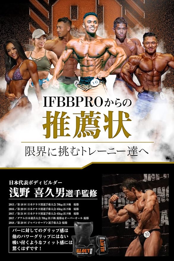 【IFBB PROはじめ多くのトップ選手が愛用】JBBF日本代表ボディビルダー浅野喜久男が監修。IFBB PROの石本ファルーク選手、湯浅幸大選手、竹本直人選手、ポパイ関根選手、廣川翔一選手、市川信行選手、倉地美晴選手、YUME選手、関西のトップフィジカー中村直輝選手、日本有数のトップフィジカーがALLOUTブランドを愛用。