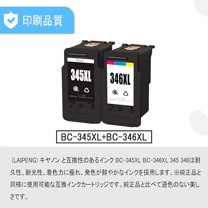 【印刷品質】 (LAIPENG) キヤノン と互換性のあるインク BC-345XL BC-346XL 345 346は耐久性、耐光性、着色力に優れ、発色が鮮やかなインクを採用します。※純正品と同様に使用可能な互換インクカートリッジです。純正品と比べて遜色のない美しさです。