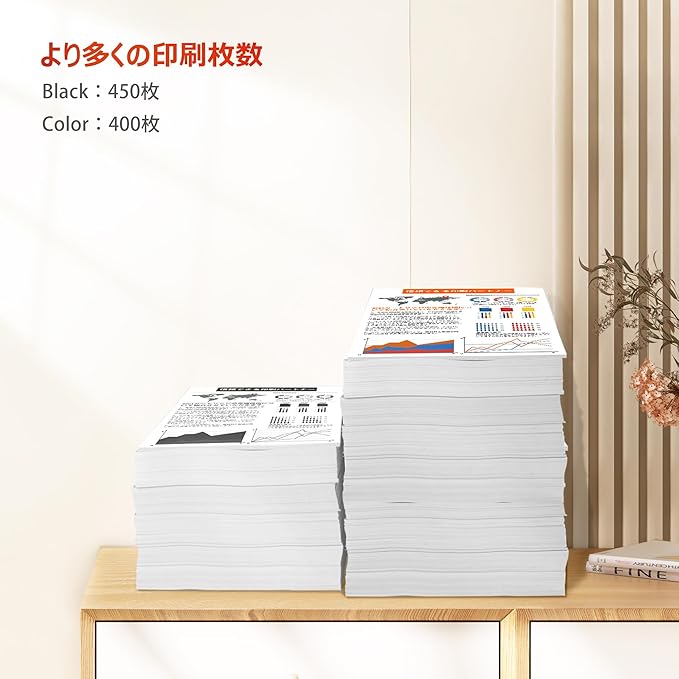 ●印字枚数:キャノン 対応インク 345 346 は 純正 インク よりも、1.2倍の容量アップを実現しました! インク 380 381 ブラックの印刷可能枚数は約450枚、カラーは400枚です。