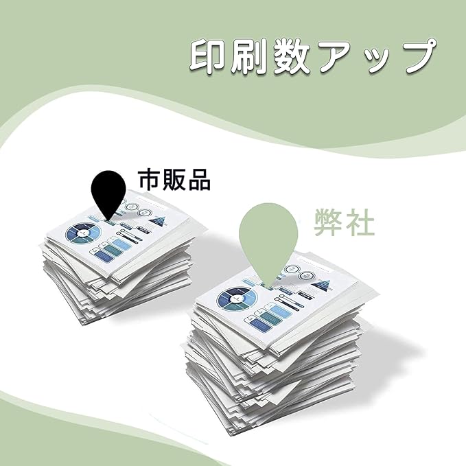 【なぜ.の】当店の互換インクはすべて工場で生産され、製造工場から販売されるため、安くと耐久性を両立する互換インクを提供いたします。また、他社インクの約2倍の液体を使用し、約2倍の印刷回数を実現することできます。