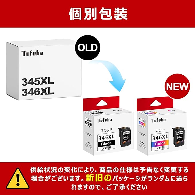 【注意事項】本製品キャノン 用 インクカートリッジ 345 346 純正品ではありません。純正品との併用は問題ありませんが、別々の互換品メーカー同士の併用は避けてください。
