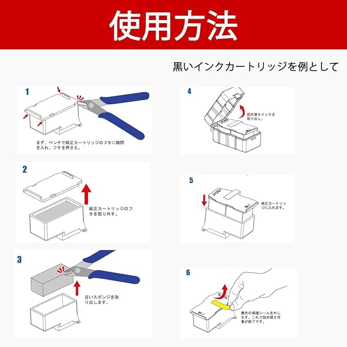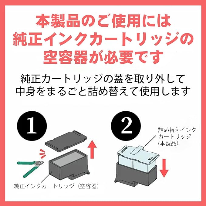 【ヒント】インキカートリッジを取り付けする時にかなりのコツが必要です。取り外しの時もですが、純正のケースに当商品を取り付けるとき、なるべく高さを抑える為強く押し込んでください。