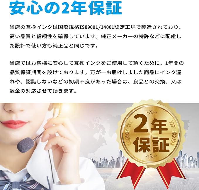 【国際規格ISO取得工場で製造】BAALANDのインクはISO9001とISO14001の認定工場で製造し、不良品率は 0.1%以下。高い品質と安心の実績で、インク商品のスタンダードです。2年.があるため、安心してご購入いただけます。