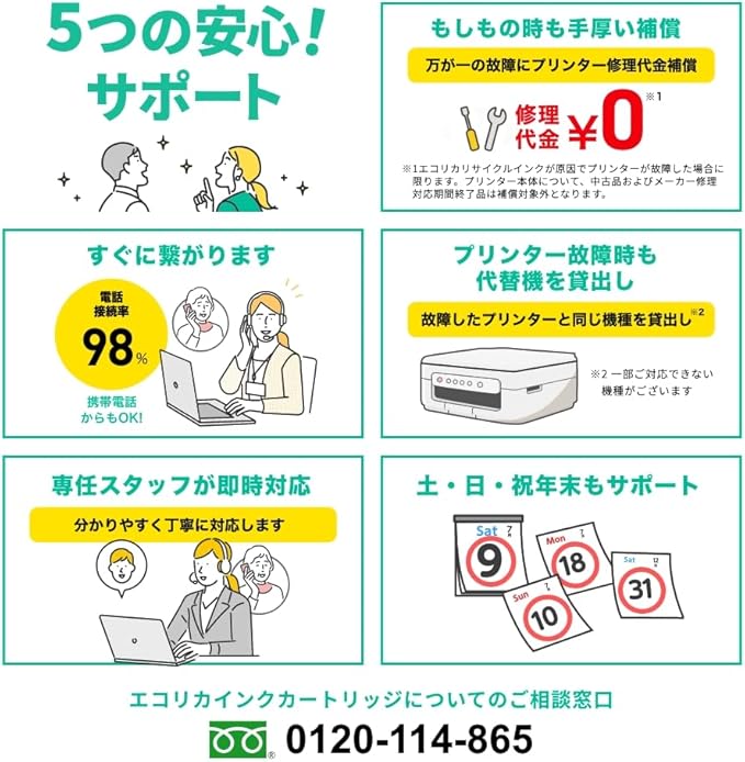 エコリカは、お客様に安心してエコリカ製品をご使用いただけるよう専任スタッフによる万全のサポートをご用意しております。 TEL:0120-114-865