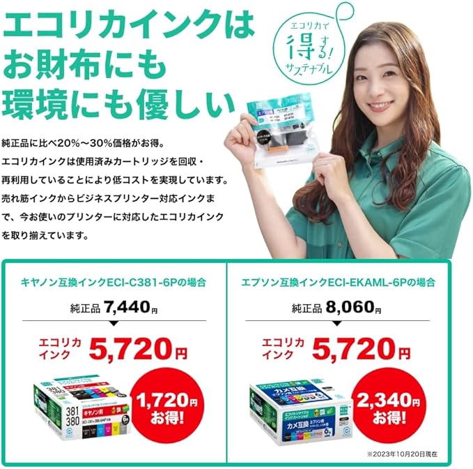 エコリカはエコマーク認定商品。第三者評価により純正品と同等の印刷枚数を.されております。品質・安全性・環境面の厳しい基準をクリアした製品です。
