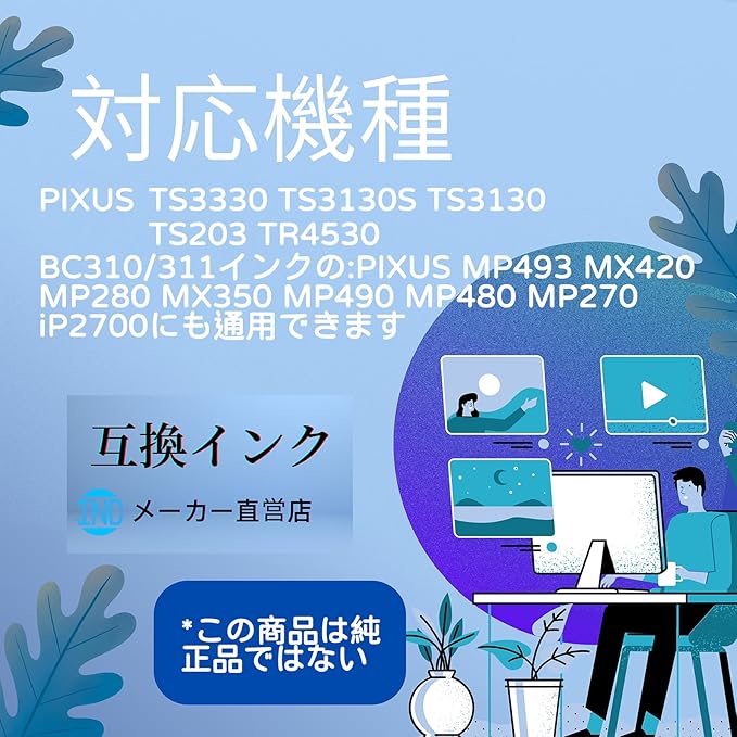 対応プリンター機種:PIXUS TS3330 TS3130S TS3130 TS203 TR4530、詰め替え道具も付きます。(BC310/311インクのプリンター:PIXUS MP493 MX420 MP280 MX350 MP490 MP480 MP270 iP2700にも通用できます)
