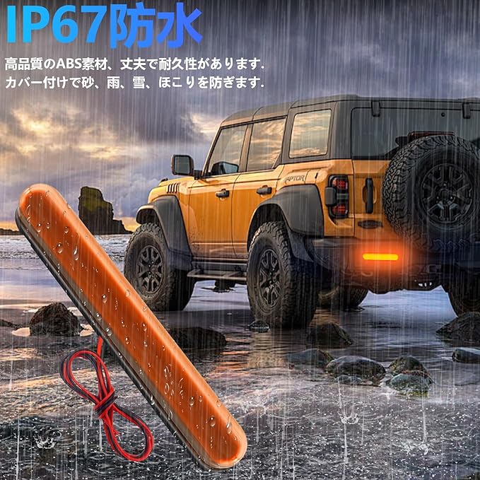 【商品仕様】サイズ:全長約126MM 幅さ約20MM 厚さ約18MM セット内容:2個*テールランプ 4個*ネジ 4個*ナット 2個*取り付け板 材質:ABS+LEDチップ 発光色:アンバー 電圧:12V/24V対応
